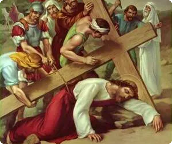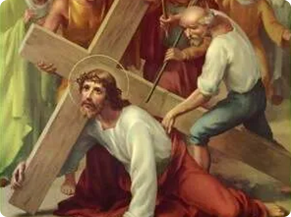 V: We adore You, O Christ, and we praise You. (Genuflect)R: Because, by Your holy cross, You have redeemed the world. (Rise)V: Consider how weak and weary Jesus was. At each step He was at the point of expiring. Fearing that He would die on the way when they wished Him to die the infamous death of the cross, they forced Simon of Cyrene to help carry the cross after Our Lord. (Kneel)R: My beloved Jesus / I will not refuse the cross as Simon did: / I accept it and embrace it. / I accept in particular the death that is destined for me / with all the pains that may accompany it. / I unite it to Your death / and I offer it to You. / You have died for love of me; / I will die for love of You and to please You. / Help me by Your grace. / I love You, Jesus, my Love; / I repent of ever having offended You. / Never let me offend You again. / Grant that I may love You always; and then do with me as You will.(Our Father, Hail Mary, Glory be.)